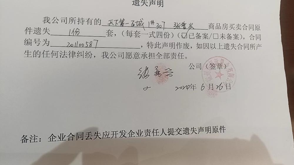 天下第一石城合同遗失公告