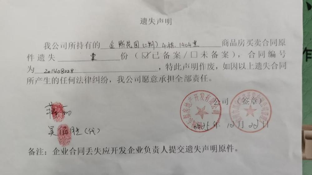 金鼎花园合同遗失公告