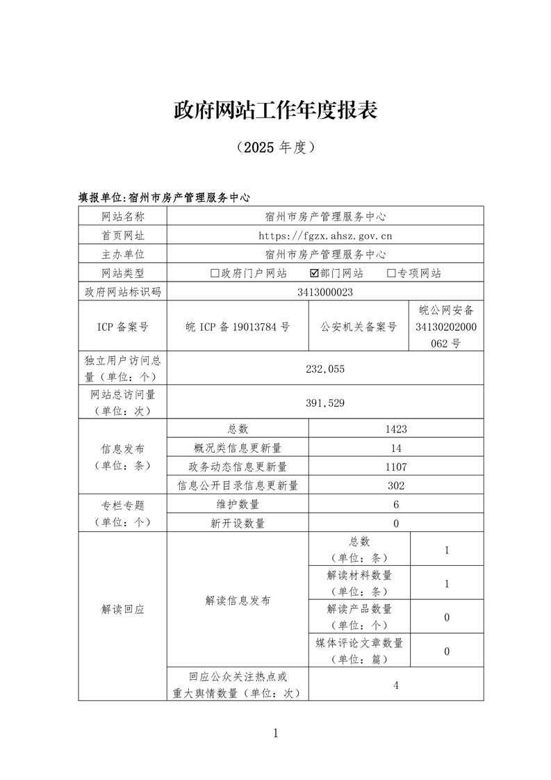 宿州市房产管理服务中心2025年度政府网站工作报表.doc