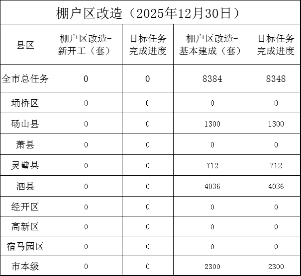 宿州市2025年12月棚户区改造工程进度表