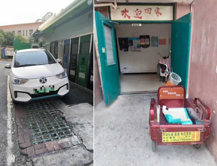 电动车进电梯、飞线充电等现象时有发生,存在一定的消防安全隐患;高空抛物问题也偶有发生,让居民在楼下行走时难免有所顾虑。此外,车辆停放不够整齐、杂物占用楼道和绿地、流动摊贩占用公共通道等情况,在小区中也较为常见。